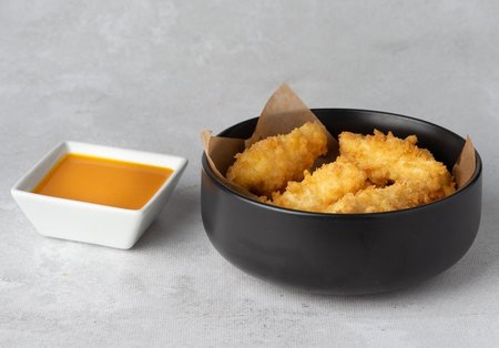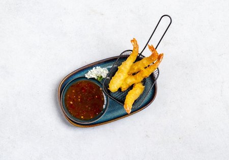 26 szt. 6x tempura maki z parzonymi krewetkami, serkiem Philadelphia i warzywami, 6x tamago maki z kalmarami w tempurze, spicy mayo i warzywami, 8x California maki z krewetkami w tempurze, spicy mayo i warzywami, 6x hosomaki z paluszkiem surimi