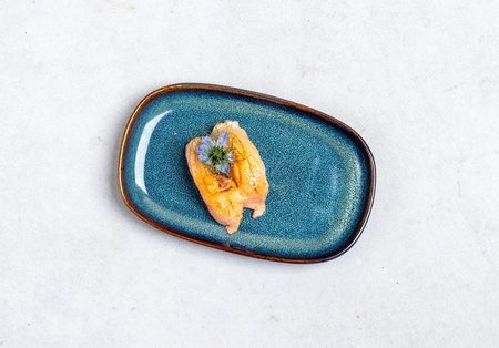 2 szt. Nigiri Sushi - nazwa pochodzi od japońskiego słowa"nigru", oznacza: ściskać, ugniatać. Najstarsza forma sushi i najbardziej lubiana przez znawców i smakoszy sushi