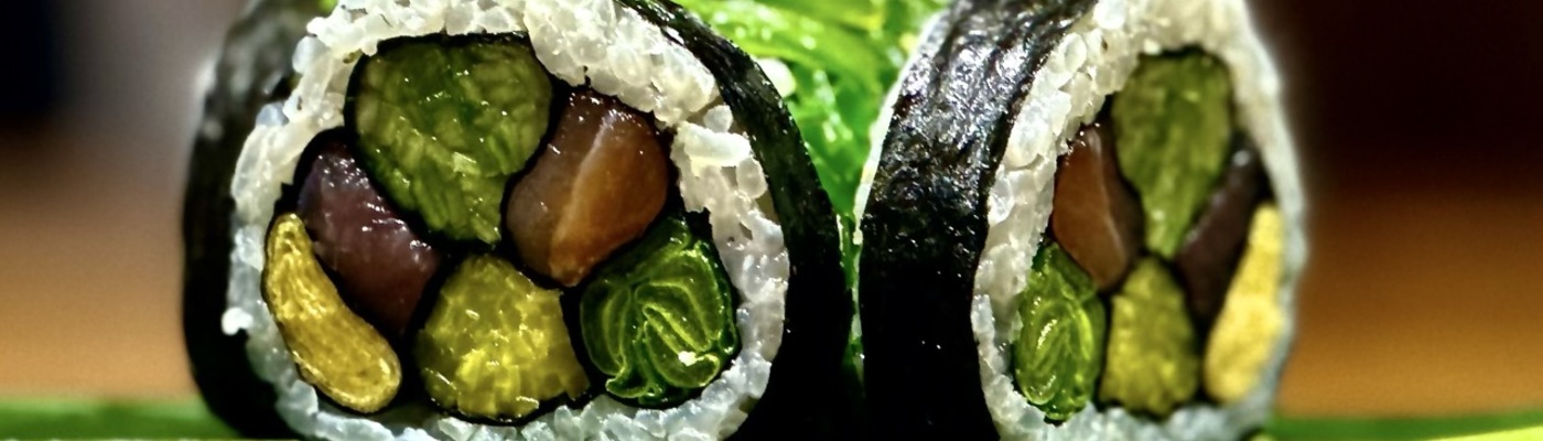 18 szt. 6x tempura maki z awokado, serkiem Philadelphia i warzywami, 6x futomaki z marchewką w tempurze, spicy mayo i warzywami, 6x hosomaki z ogórkiem