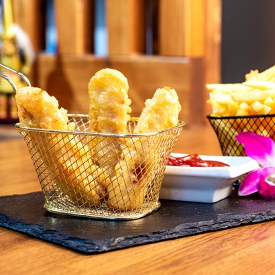 Podawane z frytkami. Zdjęcie poglądowe