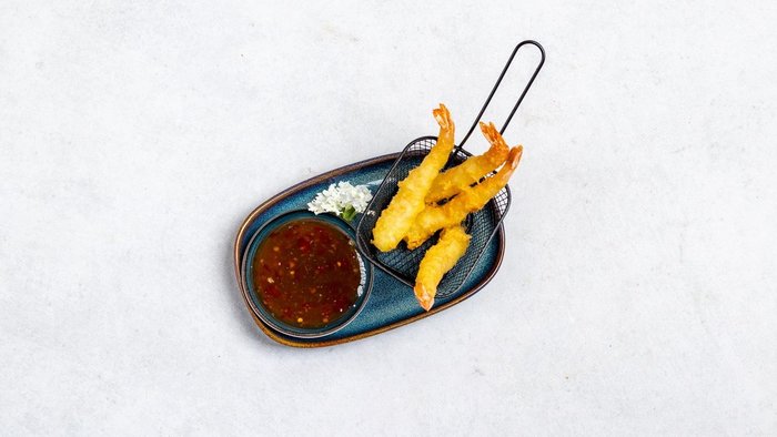 4 szt. Chrupiące krewetki w tempurze podawane z sosem sweet chilli