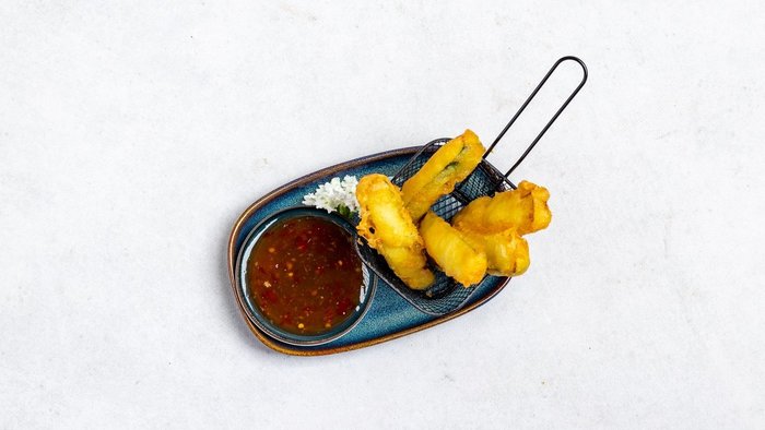 100 g chrupiących warzyw w tempurze podawanych z sosem sweet chilli